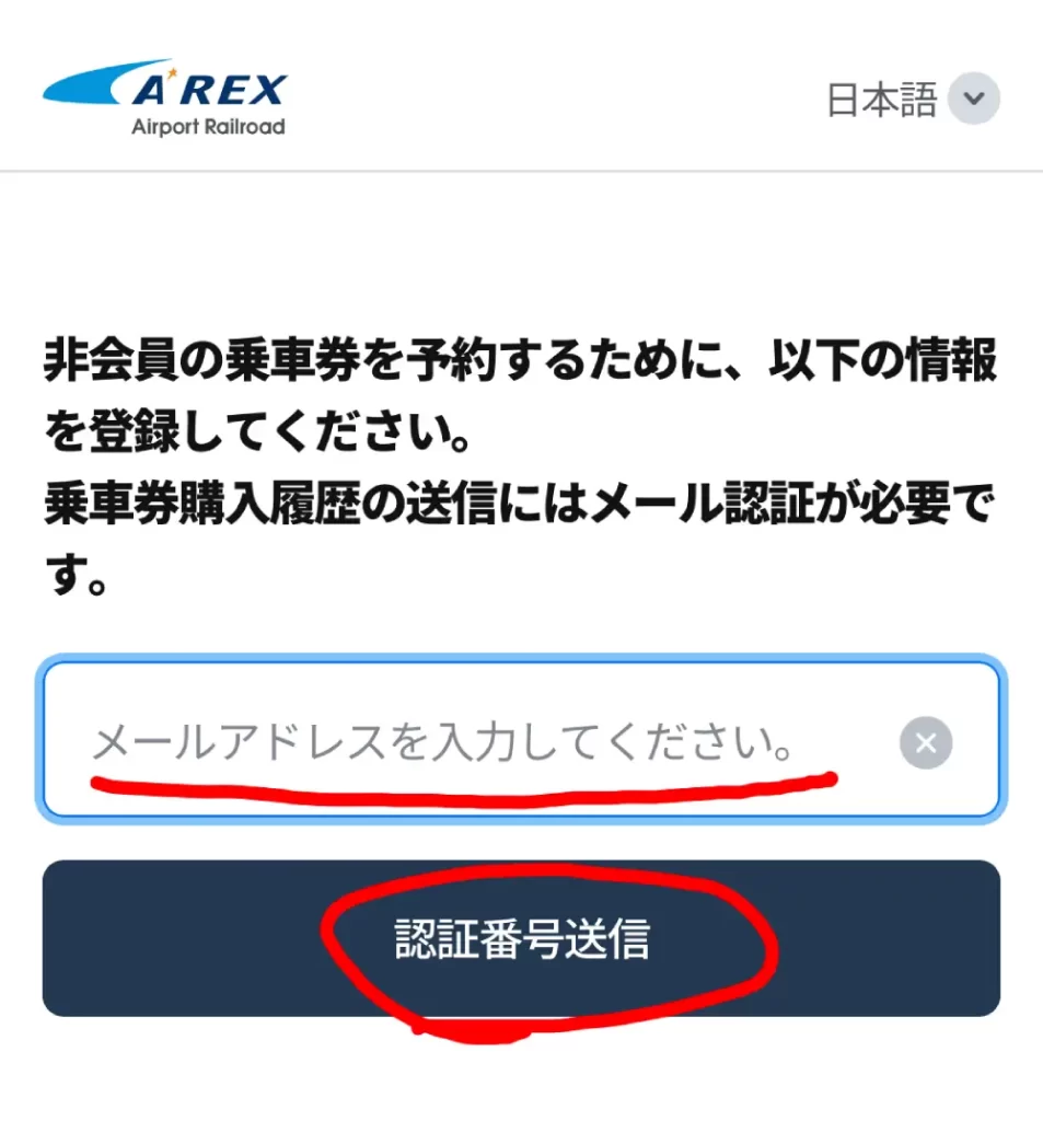 AREXの予約画面に戻り、コピーした6桁の数字を「認証番号」に入力。