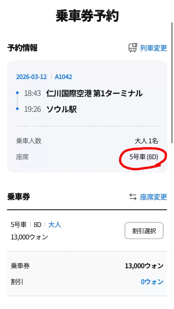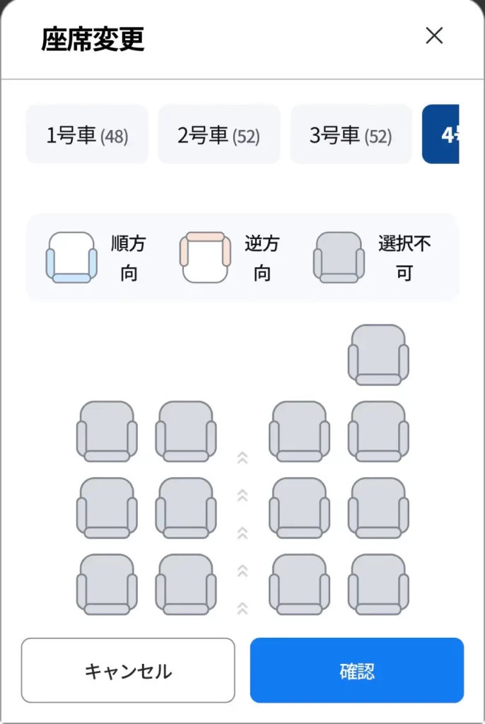 乗車の便が決定すると、座席は自動的に割り当てになります。