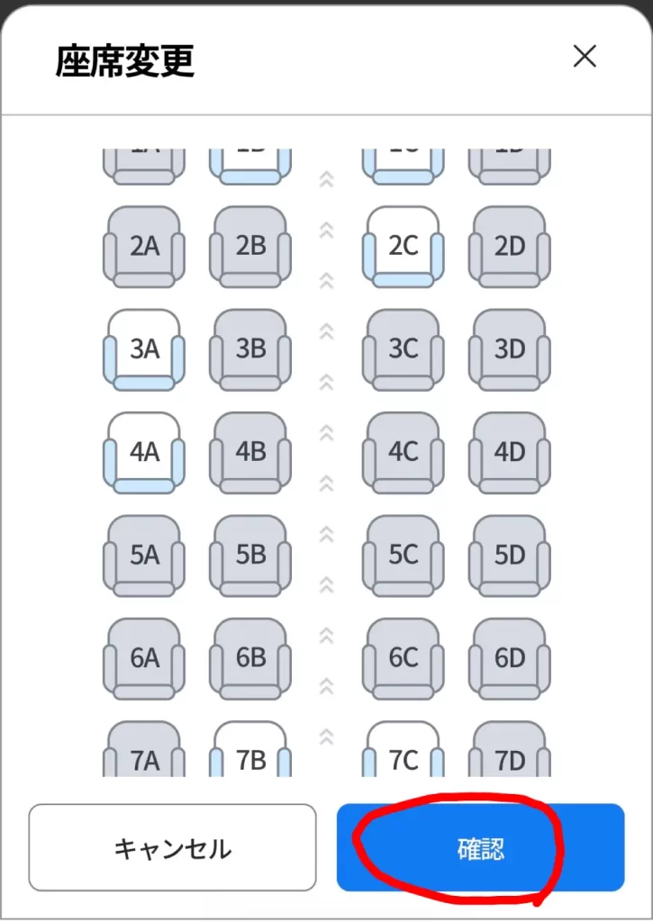 この画面で、そのまま座席指定(座席変更)ができます。