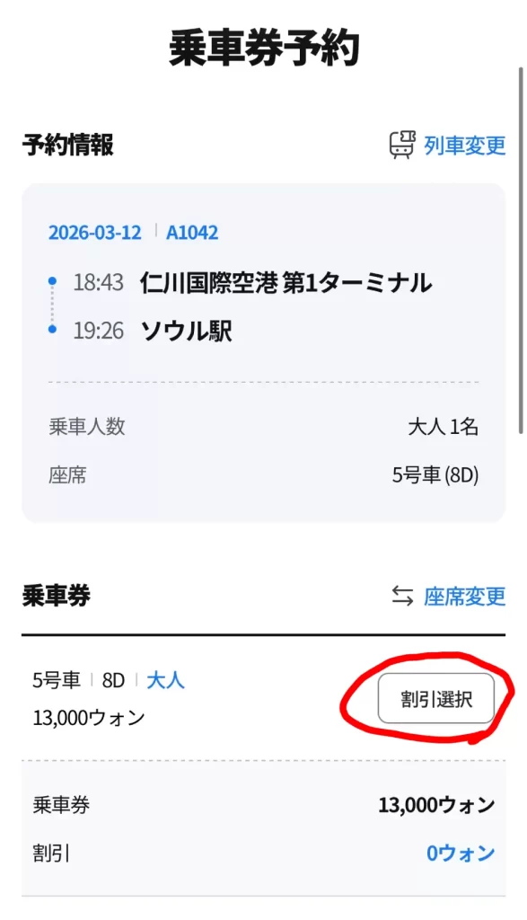 「割引選択」ボタンをタップ。