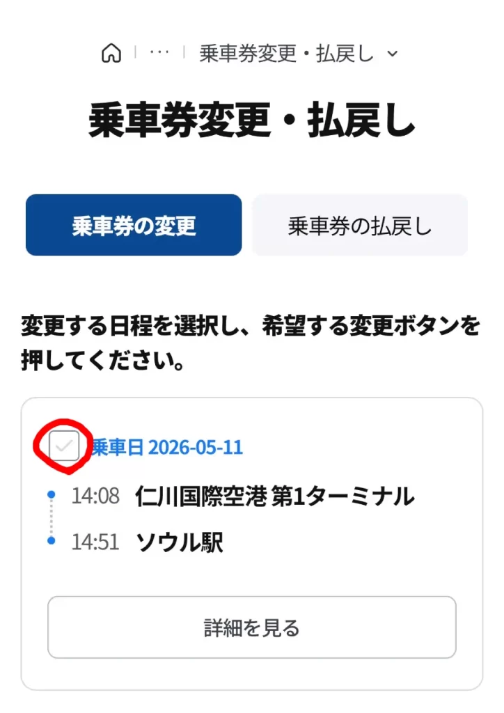 変更する乗車日にチェックを入れましょう。