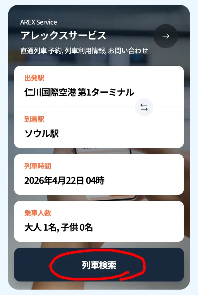 すべて入力したら「列車検索」ボタンをタップしましょう。