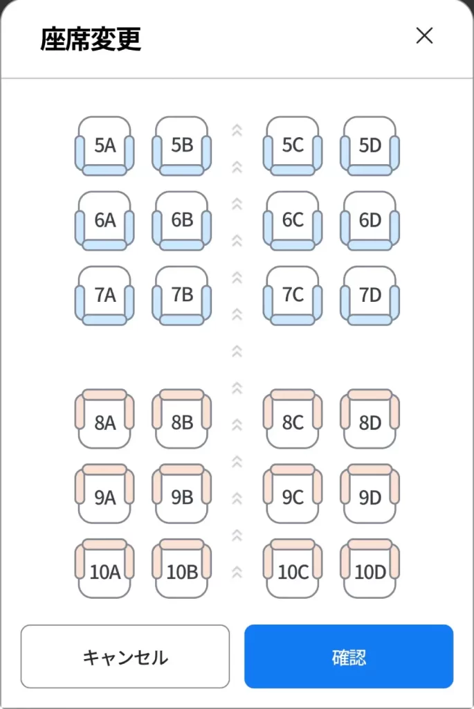 座席の変更画面になります。