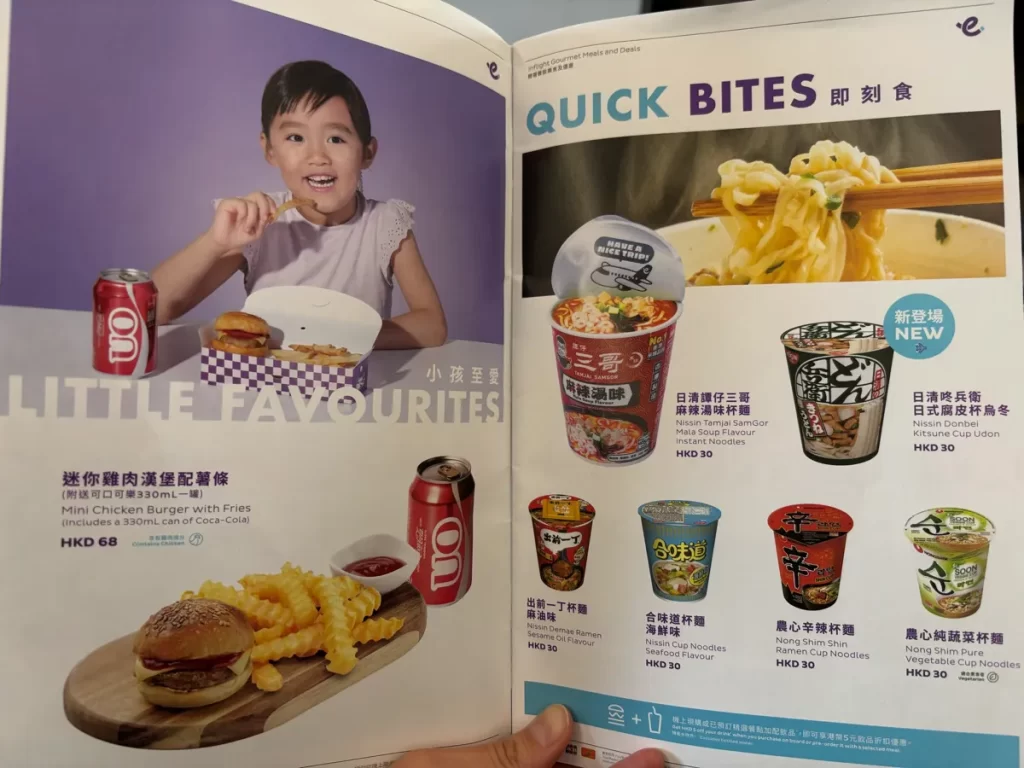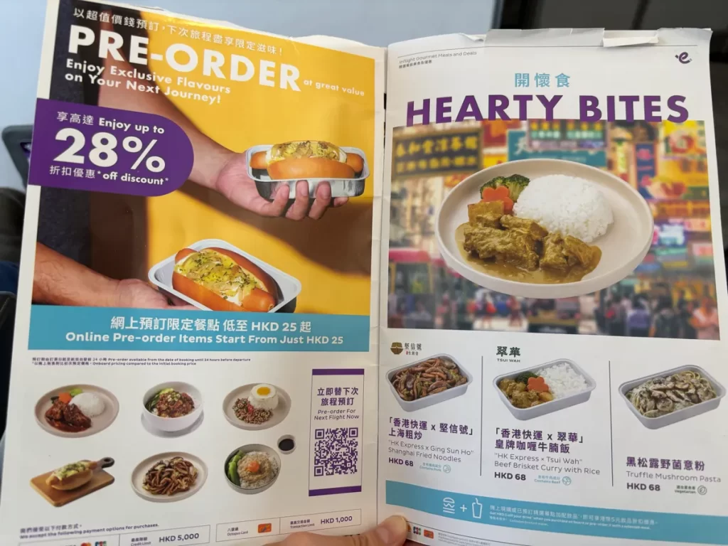 香港エクスプレスの機内食は、他のLCC同様、事前予約必須。