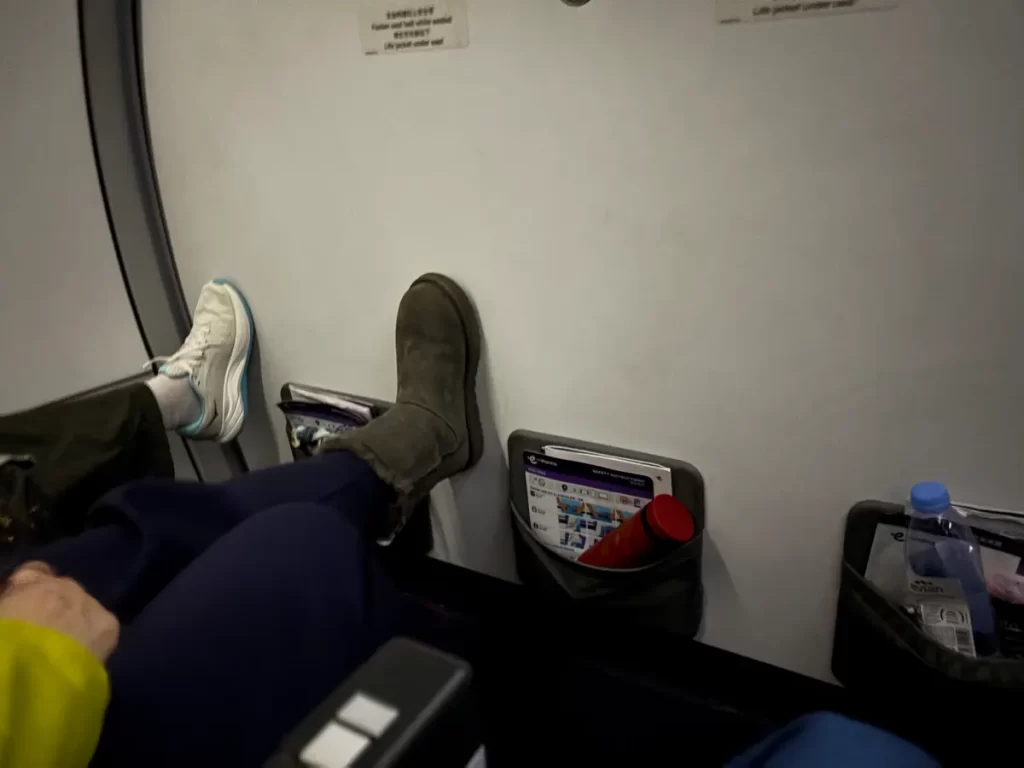 同じ通路側なら、最前列より非常口近くのほうが絶対に落ち着いて過ごせます
