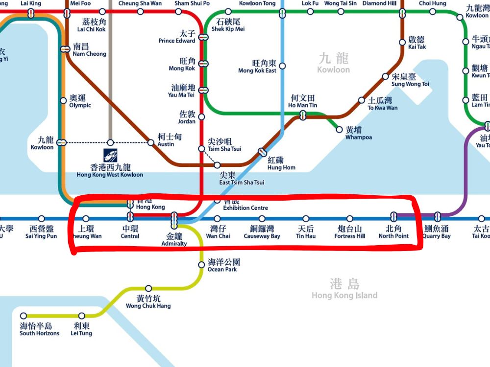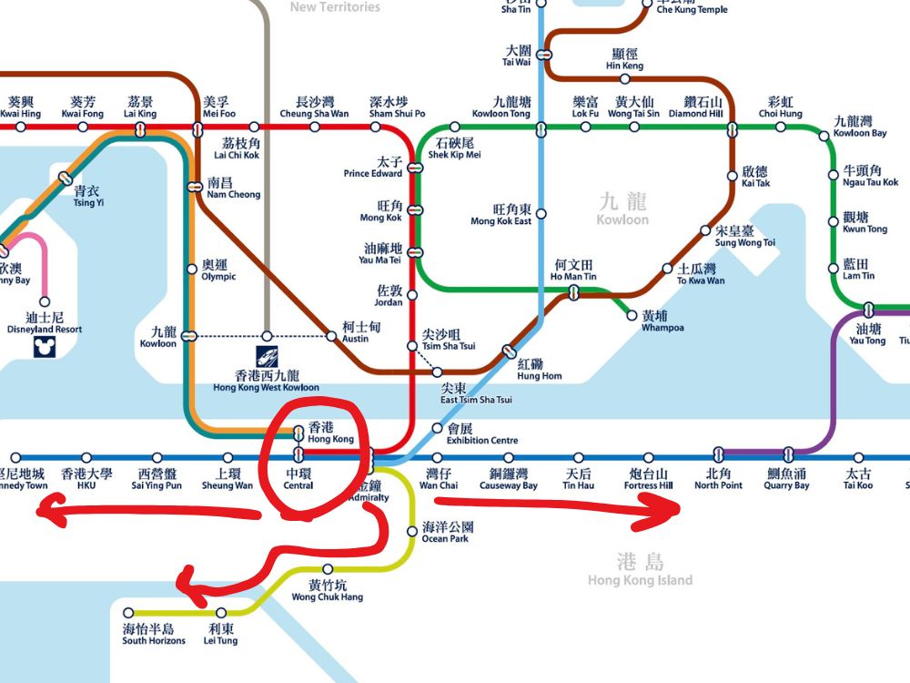 「香港駅」「中環駅」以外の香港島にホテルがある場合。