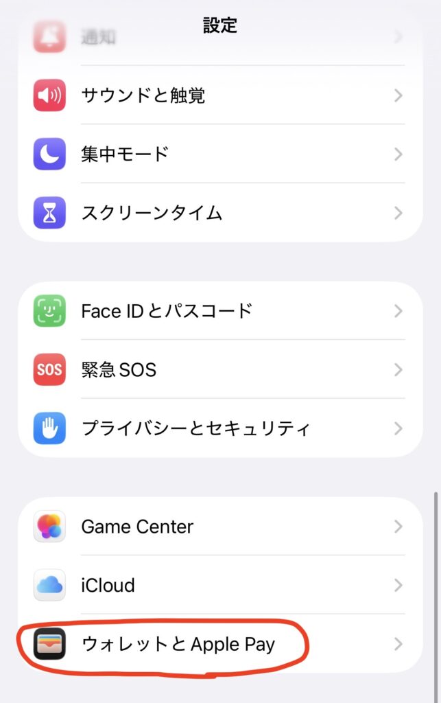 「設定」から「ウォレットとApple Pay」をタップ。(下の方にあります)