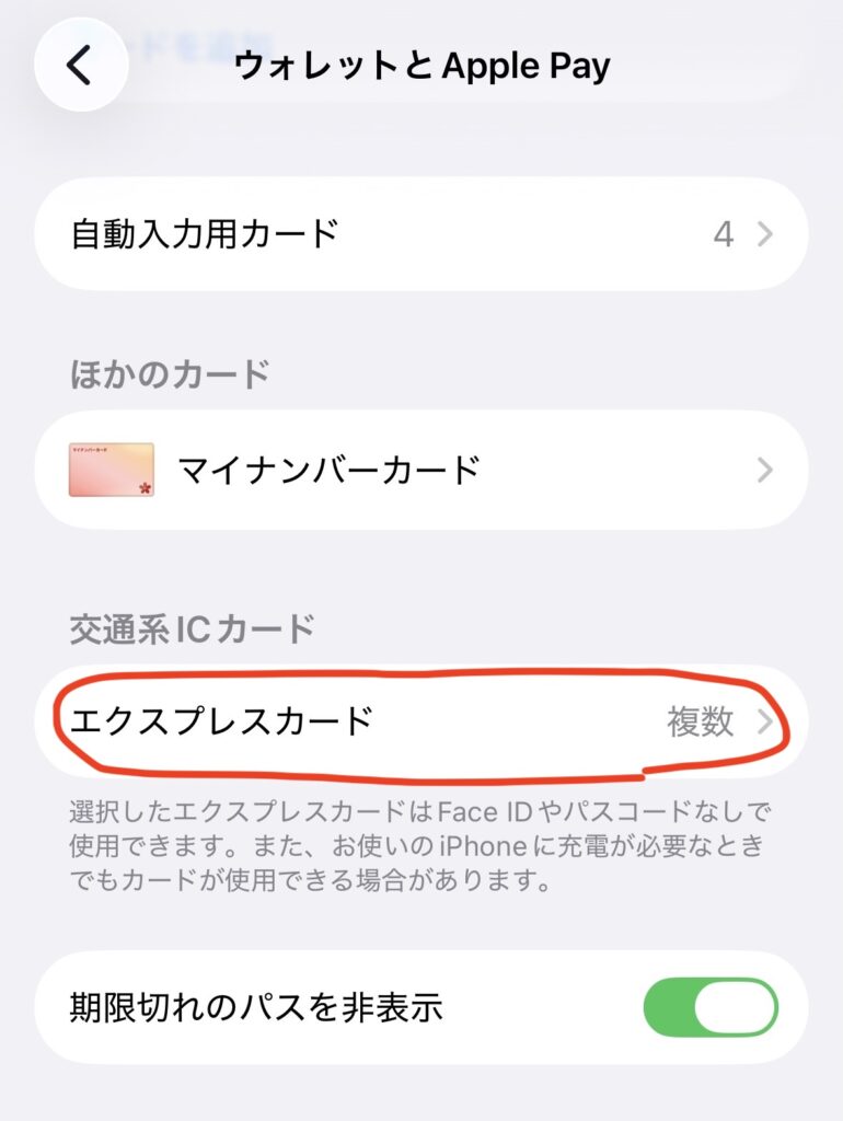 自動で設定される可能性もありますが、念のため「エクスプレスカード」の設定もしておきましょう。