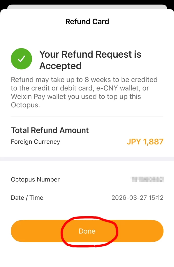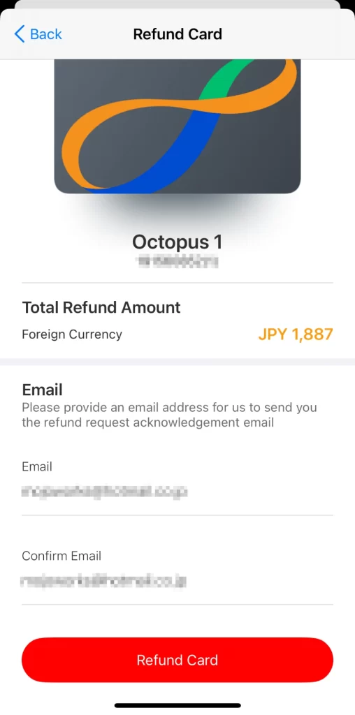 オクトパスアプリは、帰国後、返金が可能です。