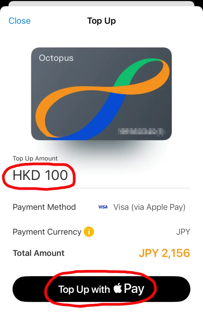 希望のチャージ額を入力して「Top Up with Apple Pay」をタップしましょう。