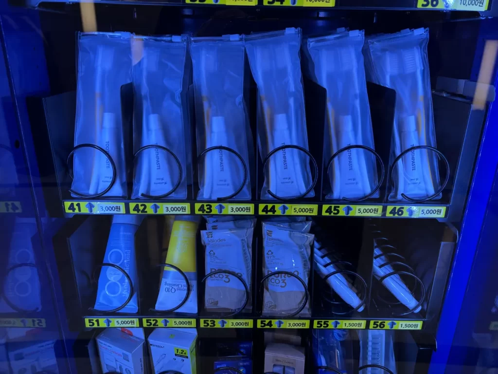 歯ブラシやメイク落としなどは、1階の自販機で購入できます。