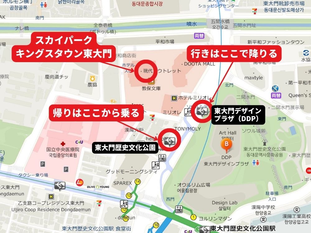 最後に、スカイパークキングスタウン東大門のアクセスをご紹介します。