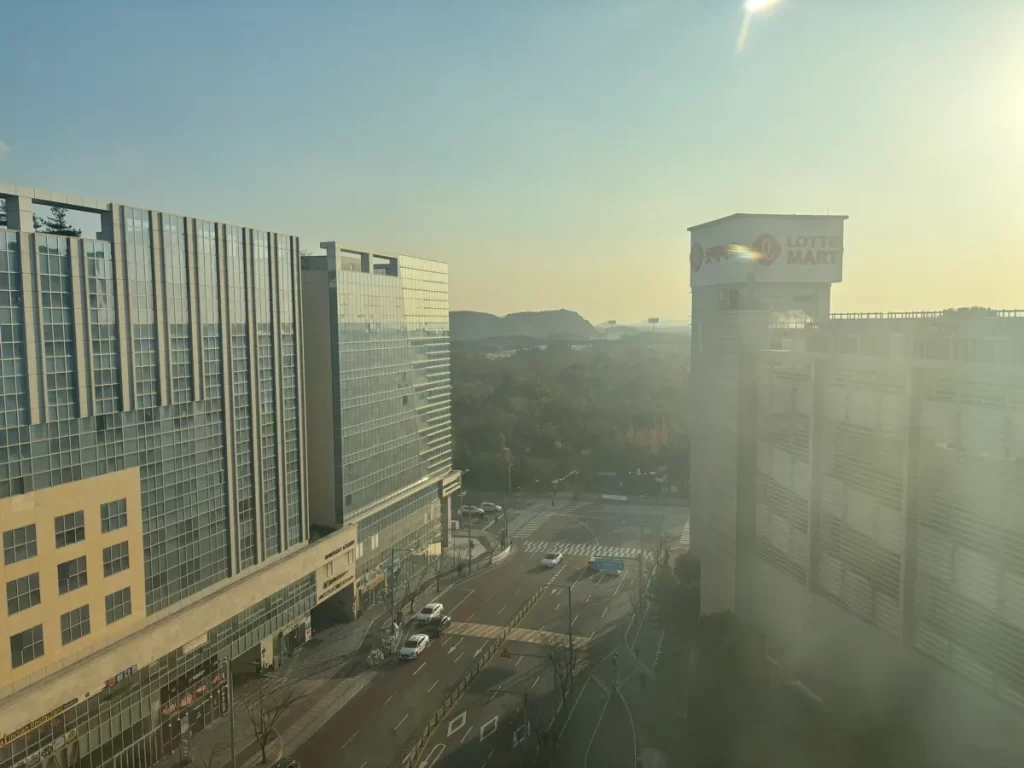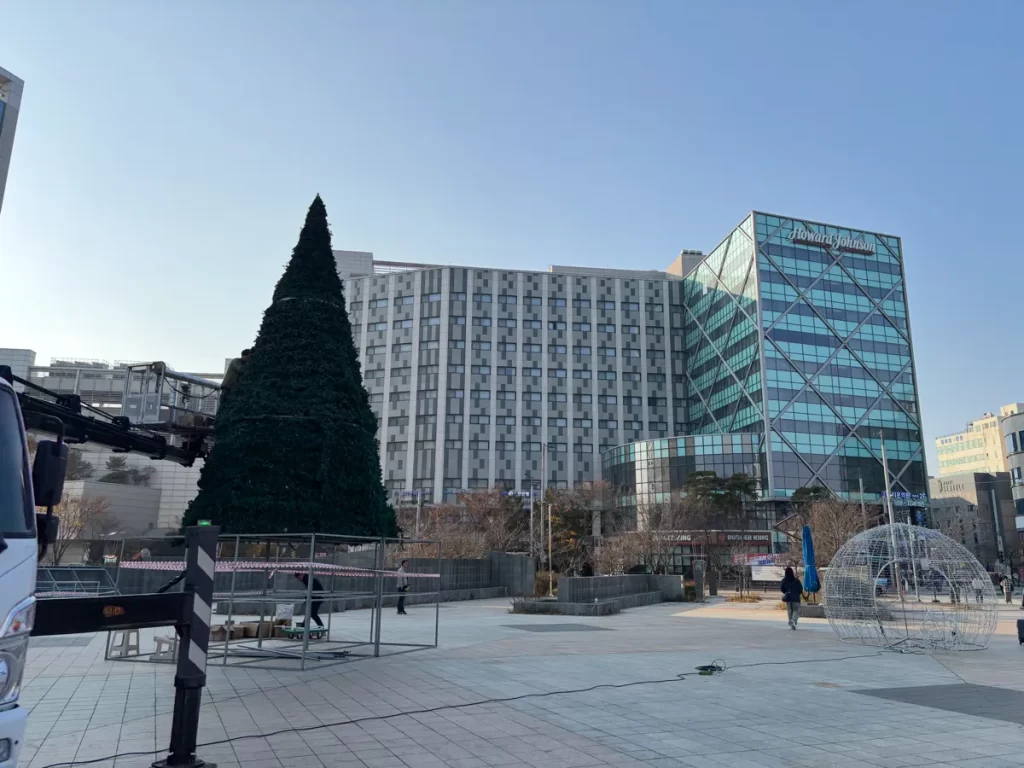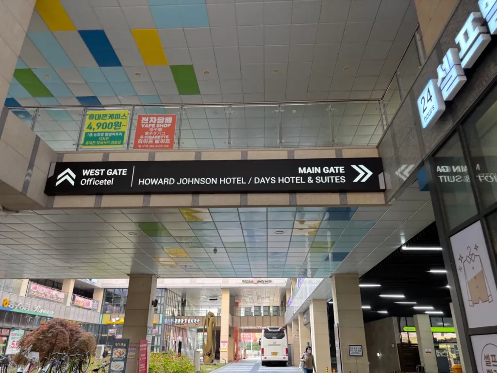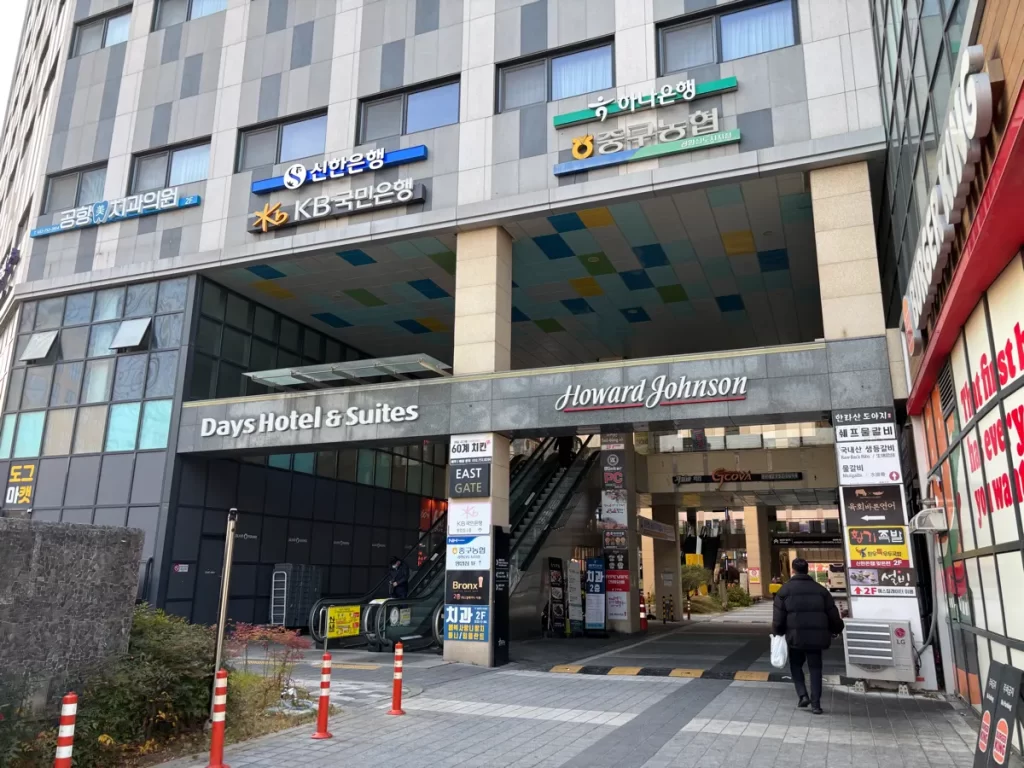 ハワードジョンソン仁川は雲西駅1番出口から出たら、真正面に見えるビルです。