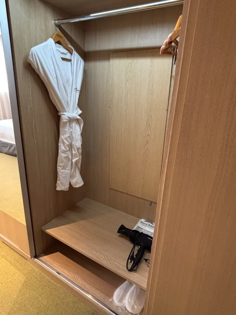 入ってすぐの場所に「ハンガー」「バスローブ」「スリッパ」があります。
