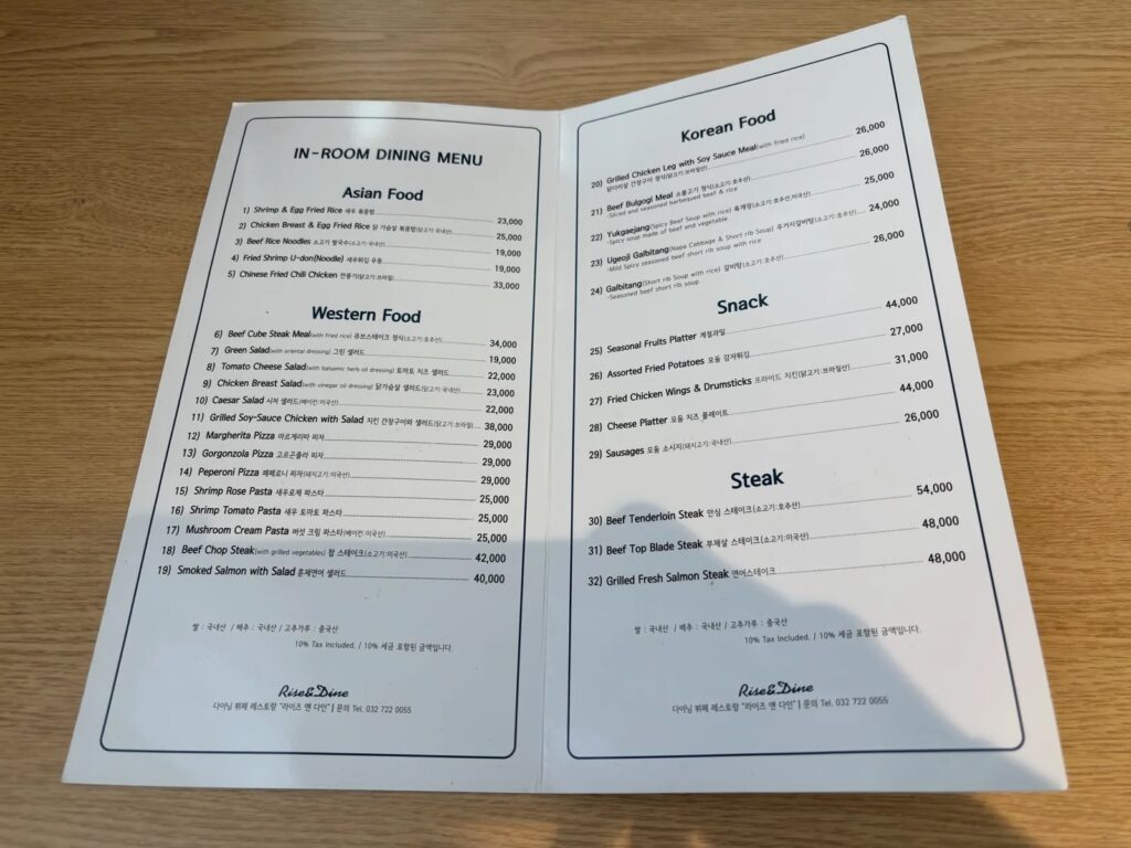インルームダイニングが頼めるようで、デスクにメニューが置いてありました。