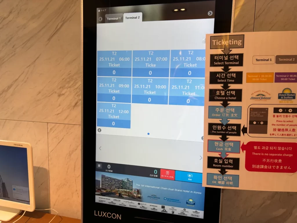 第1ターミナル行きか、第2ターミナル行きかを選び、ホテルを出発する時刻を選択すればOKです。