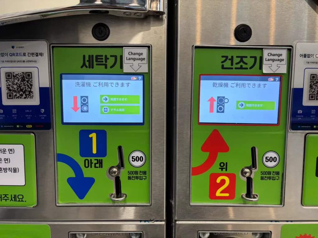 料金は、洗濯機・乾燥機共に5,000₩です。