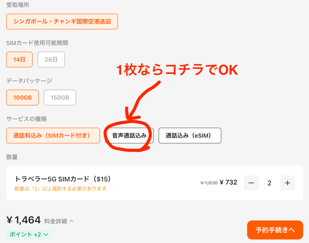 最初の状態だと、なぜか2枚組のSIMカードセットが選択されています。